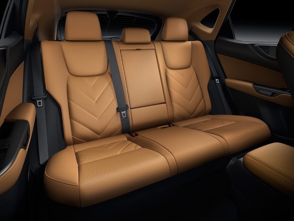 The front and rear tires have been enlarged from 225/60R18 inches to 235/50R20 inches, and the front and rear treads have been widened to enhance the NX’s dynamic image. In addition, by lowering the hip point of the rear seat, passenger head clearance has been increased to improve rear-seat occupant comfort.