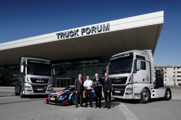 Since 2009 Audi Sport has relied on tractor units from MAN to transport its DTM and LMP racing vehicles to