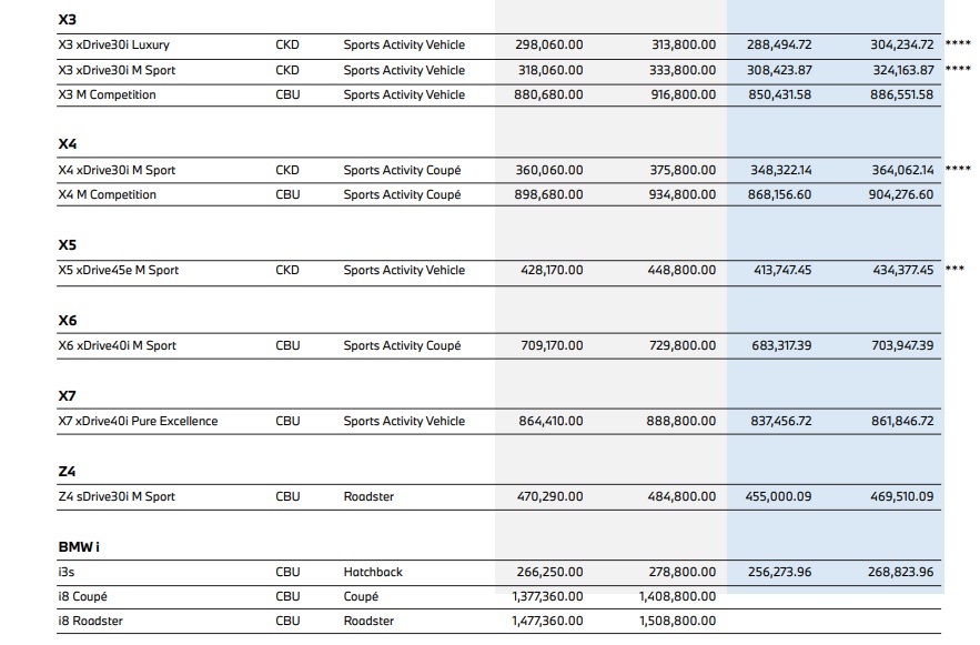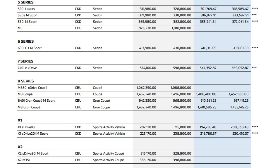 BMW Group Malaysia has announced new price lists for the BMW and MINI range of vehicles.